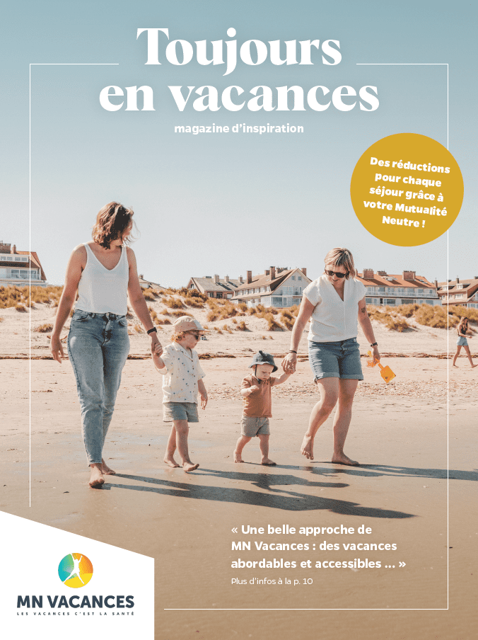 MN VACANCES a pour mission de rendre accessibles à tous des vacances de qualité en Belgique et à l’étranger, avec des réductions et avantages intéressants pour les membres des Mutualités neutres.